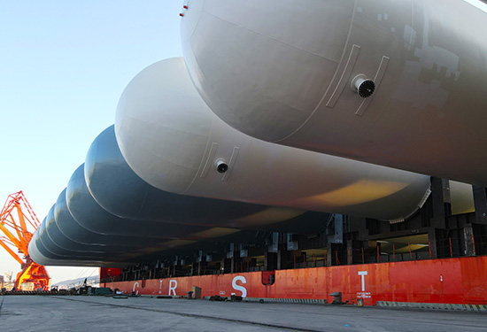 威海石島重工制造“巨無霸”四件套重裝啟運